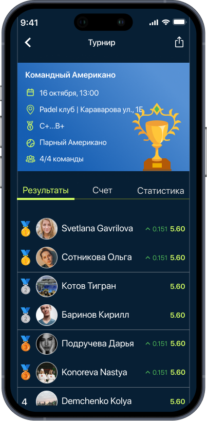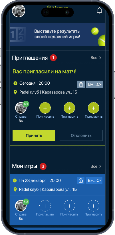 Крупнейшая платформа для организации игр, поиска партнёров и участия в турнирах, бронирования и оплаты кортов, управления клубами!